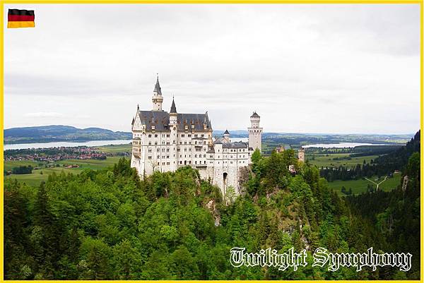 Schloss Neuschwanstein(新天鵝堡):全名新天鵝石城堡,是19世紀晚期的建築,位在今天的德國巴伐利亞西南方,鄰近年代較早的Schloss Hohenschwangau(霍恩施萬高城堡,又稱舊天鵝堡),距離Füssen約4公里,離德國與奧地利邊界不遠。