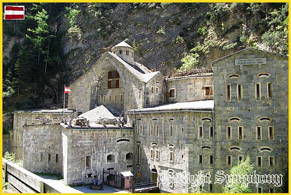 在進入義大利之前有個Nauders小鎮。Nauders之前,剛出隧道的路邊山壁,有座建於1834至1840年間的碉堡Straßensperre Nauders。
