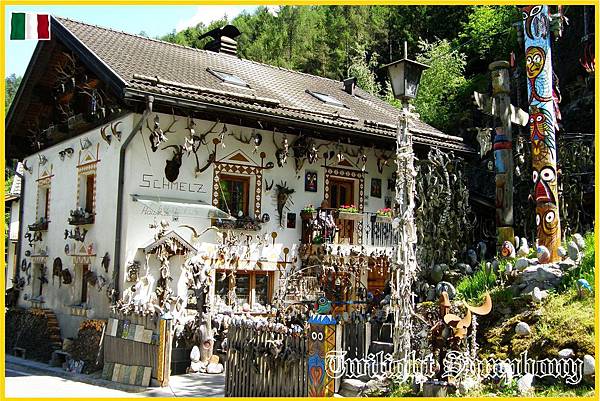 Prato allo Stelvio小鎮的往Passo dello Stelvio的SS38公路,路邊彩繪柱子、石頭及怪怪小屋。