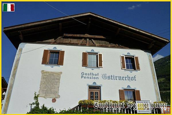 2011年我們來到北義大利旅遊時,也曾有此疑問,Why?Warum?Perché?這是因為南提洛爾省是屬於Trentino-Alto Adige自治區,而其由兩個分區組成,分別是多數人說義大利語的特倫托省及多數人說德語的南提洛省;該區在直至1919年被義大利吞併前,都還是奧匈帝國的一部分。而有南提洛爾省自然就有北提洛爾省,只不過屬於奧地利的北提洛爾省(Nordtirol),現在都直接稱為提洛爾省(Tirol),包括另一塊沒有連在一起的碎肉~東提洛爾(Osttirol)。呼!歷史和地理課一併上完(擦扞)。