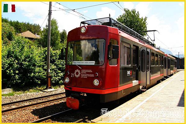 Treno del Renon(Rittner Bahn)窄軌火車只有兩節車廂,所以沒辦法拍出較大的弧線。
