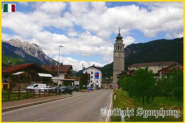 然後接SS52,在Forni di Sopra小鎮拍攝Chiesa Parrocchiale Santa Maria Assunta教堂和山景。