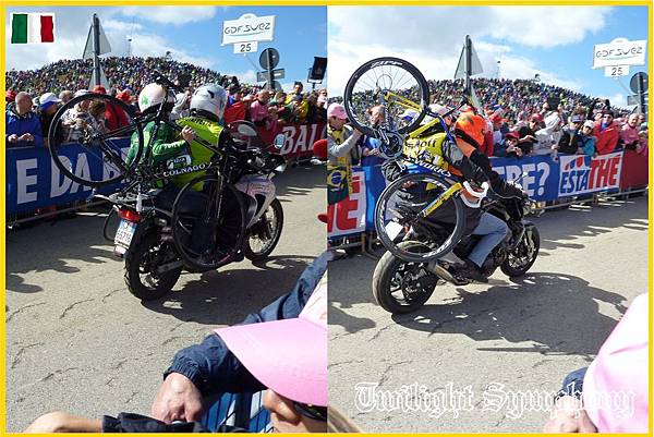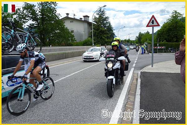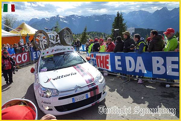 所以從Ovaro開始,各車隊就會啟動機車扛自行車的方式來準備備用車,但應該是只有廝殺激烈的主將級車手才有。後方後方勞苦功高的副將們,若有機器故障的話,就慢慢等後方後方的後方的隊車來吧!也趁機休息一下下。