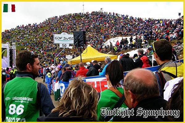 雖然此時車手們還沒有到山腳下的Ovaro,還沒開始爬坡,但山頂上早就已經擠滿了觀戰的車迷,真的是人山人海。