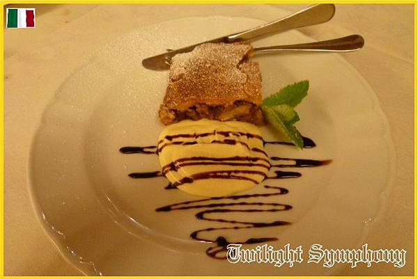 餐後的甜點當然是不能少的,蘋果派&藍莓冰淇淋。