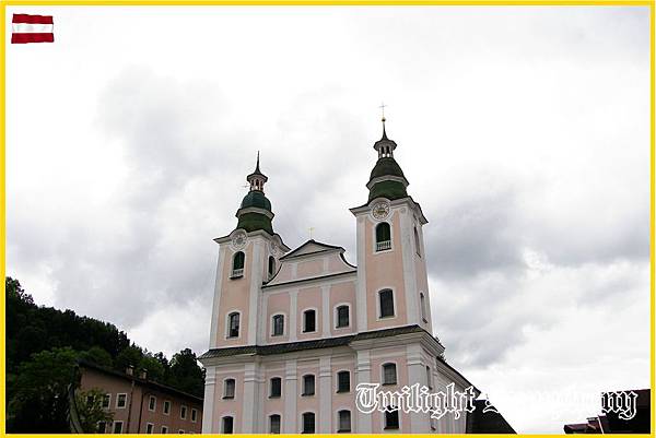 離開飯店後,會先經過Brixen im Thale小鎮的市區。市區最顯眼的就是粉色的Maria Himmelfahrt聖母升天教堂,巴洛克式建築風格是座羅馬天主教教堂。