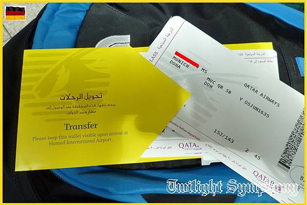 黃色信封上很明顯的寫了轉機Transfer,這就是我在第一天所講的,卡達航空以此作了一個簡單又方便易懂的方式,來區分不同目的到杜哈機場的旅客。(聯營的國泰航空就是不懂)
