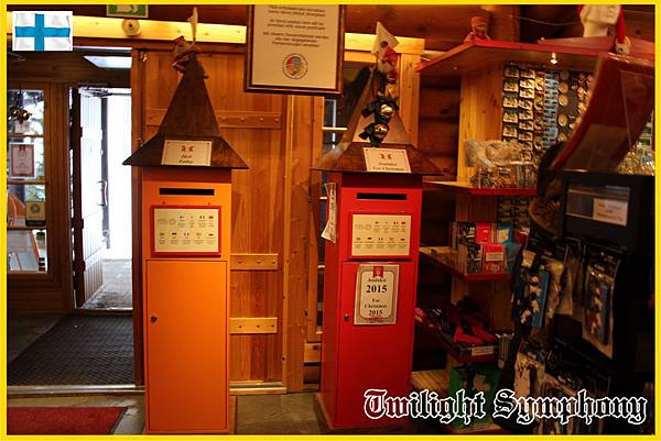 這裡有兩個不同顏色的郵筒,左邊黃色的郵筒代表當日寄出,大約2~3星期會收到。紅色的郵筒則是今年聖誕節前寄出,預計聖誕節收到。嗯嗯!就看今年的聖誕節,聖誕老公公會不會駕著雪橇,從芬蘭送明信片到台灣囉!