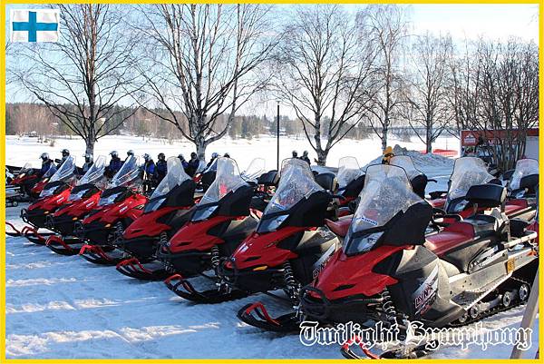 結冰的凱米河上最適合的活動當然就是雪上摩托車了,眼前這一團準備出發的Snowmobile Safari細按台灣ㄟ鄉親喔!