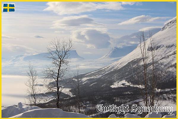 拉普蘭之門Lapporten近在眼前,左下角結冰的Torneträsk湖彷若雲海。還是我老眼昏花?