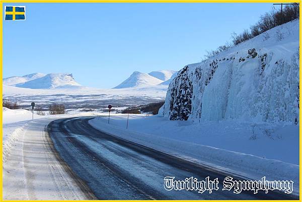 在雪地上混了一個早上,下午前往Abisko國家公園。走E10公路,路邊拍岩壁上的冰柱以及Lapporten。