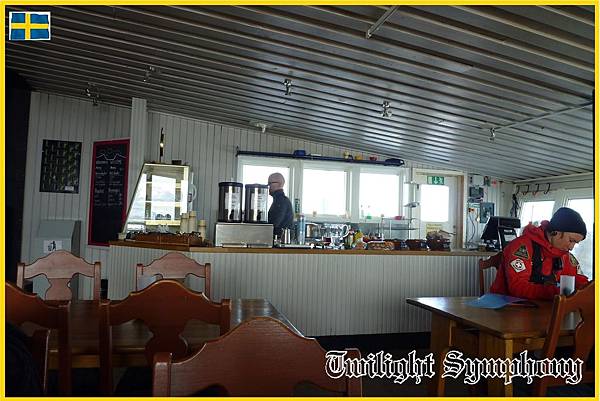 我們買了一張明信片15SEK及郵票14SEK,同樣是國際郵件,卻比挪威的17 Nok便宜。另外買了二份的Hotdog夾麵包50SEK,一杯熱巧克力35SEK。說到熱巧克力,其實就是給你一包阿華田,然後加熱水沖泡而已,而且甜度甜得很誇張,所以我們是把它沖泡成二杯,才符合我們能接受的甜度。還有一本留言本,看到不少台灣的冰友的留言,當然我們也寫了幾個字。