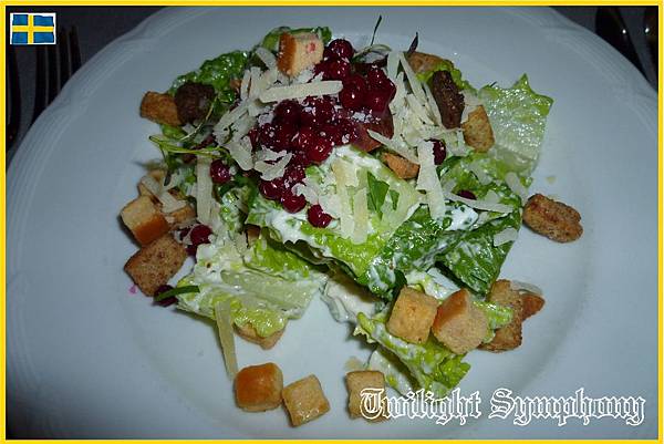 前菜,馴鹿凱撒沙拉135SEK。口愛的馴鹿.....